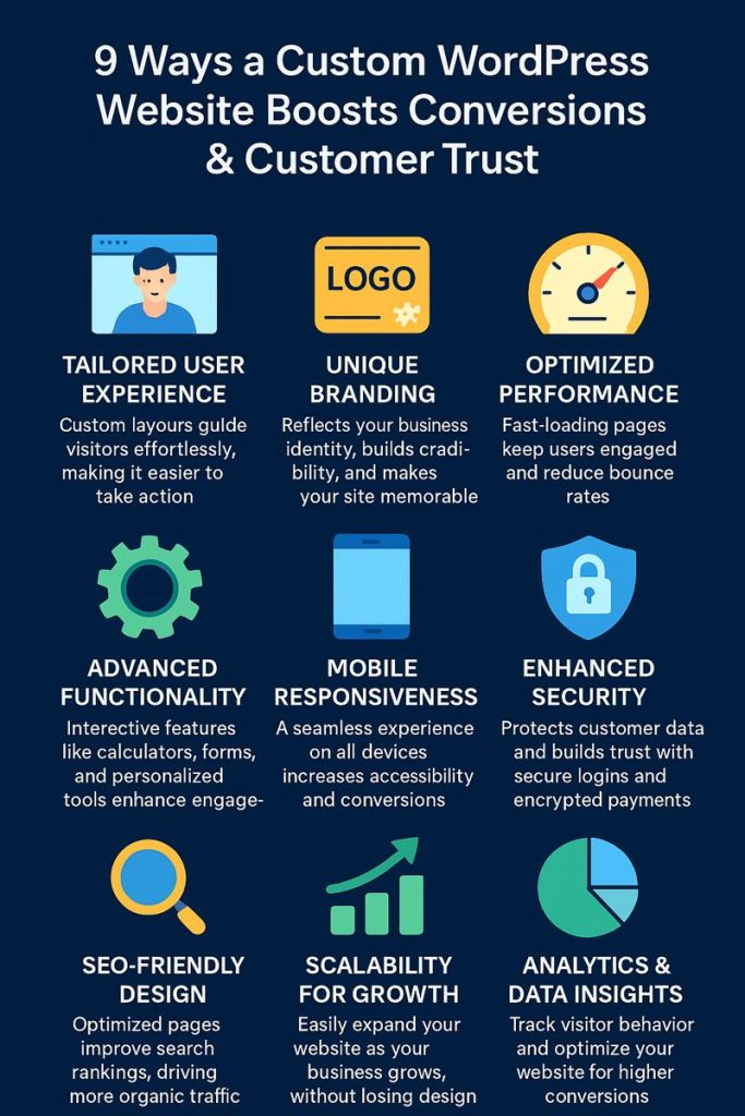 A custom WordPress website is more than a digital presence—it’s a strategic business asset. By offering a tailored user experience, strong branding, optimized performance, advanced functionality, and enhanced security, it boosts both conversions and customer trust.