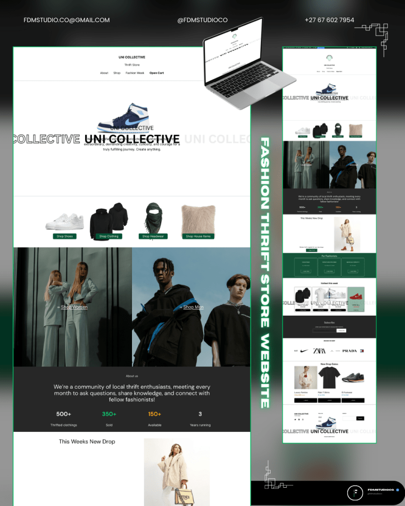 Uni Collective is a modern clothing brand website designed to showcase stylish apparel and elevate product presentation. With a sleek, contemporary layout and high-quality visuals, the site highlights collections, seasonal releases, and standout pieces, making it easy for visitors to explore the brand’s aesthetic. Intuitive navigation and well-organized product categories ensure a seamless browsing experience for fashion enthusiasts.