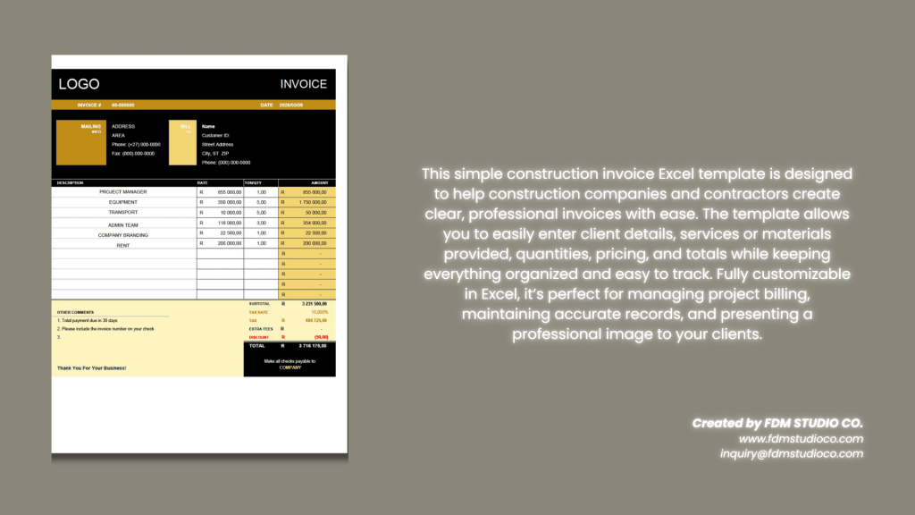Simple Construction Company Invoice Template
