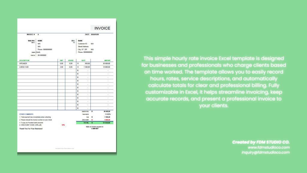 Simple Hourly Rate Invoice Template